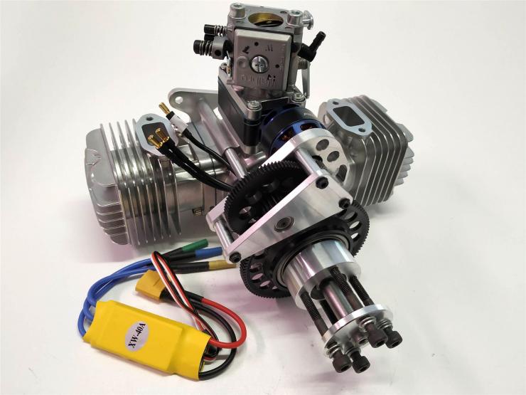 Die Motoren kommen mit fertig angebautem Anlasser sozusagen Plug and Play. Mit dem angebauten Bruschlessmotor lässt sich der Benzinmotor in null komma nix sicher starten . Alle Stahlritzel sind kugelgelagert im Hauptzahnrad ist ein Freilauflager verbaut . Als Regler für den Anlassermotor liegt ein 40A BL Regler bei .Am Sender benötigen sie nur noch einen freien Kanal mit einem Taster oder Momentschalter .