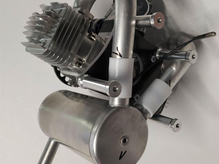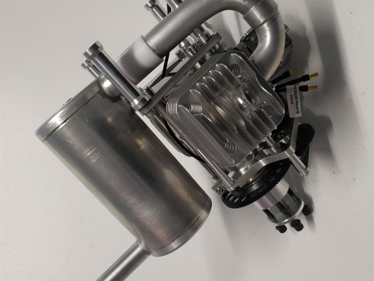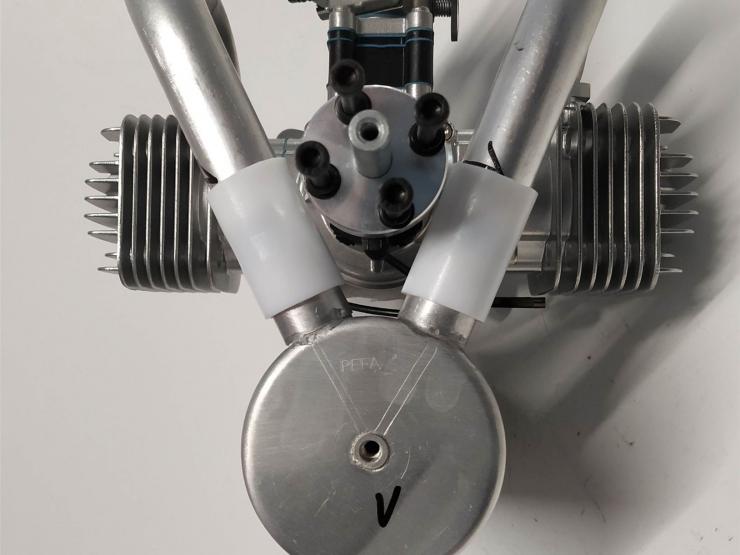 Der neue RCGF 70 Boxer hat schräg angeordnete Kerzen die den Motor sehr schmal aufbauen lassen .